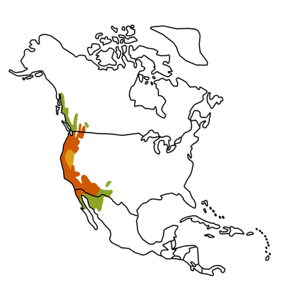 Year round resident along the West Coast of the United States and into western Mexico, with some individuals expanding north into southern Canada.