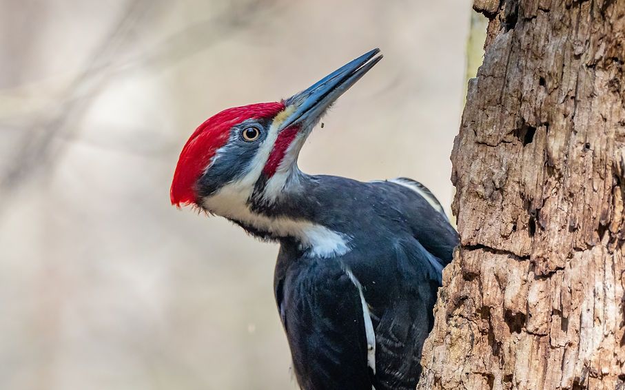 The Pileated Woodpecker is one of the largest and most striking woodpeckers in North America. Known for its bold red crest and powerful drumming, this impressive bird is often heard before it is seen as it searches tree trunks for insects.